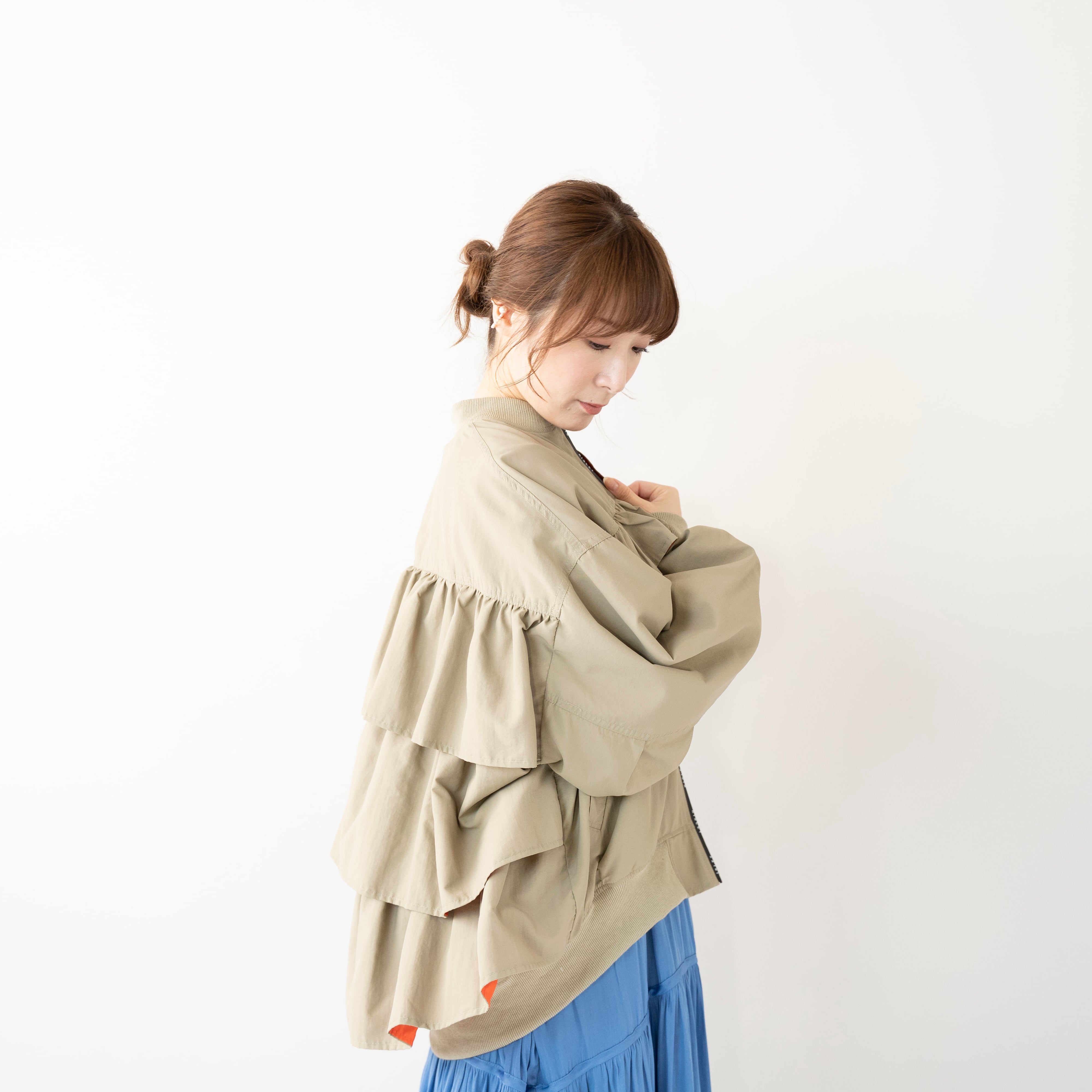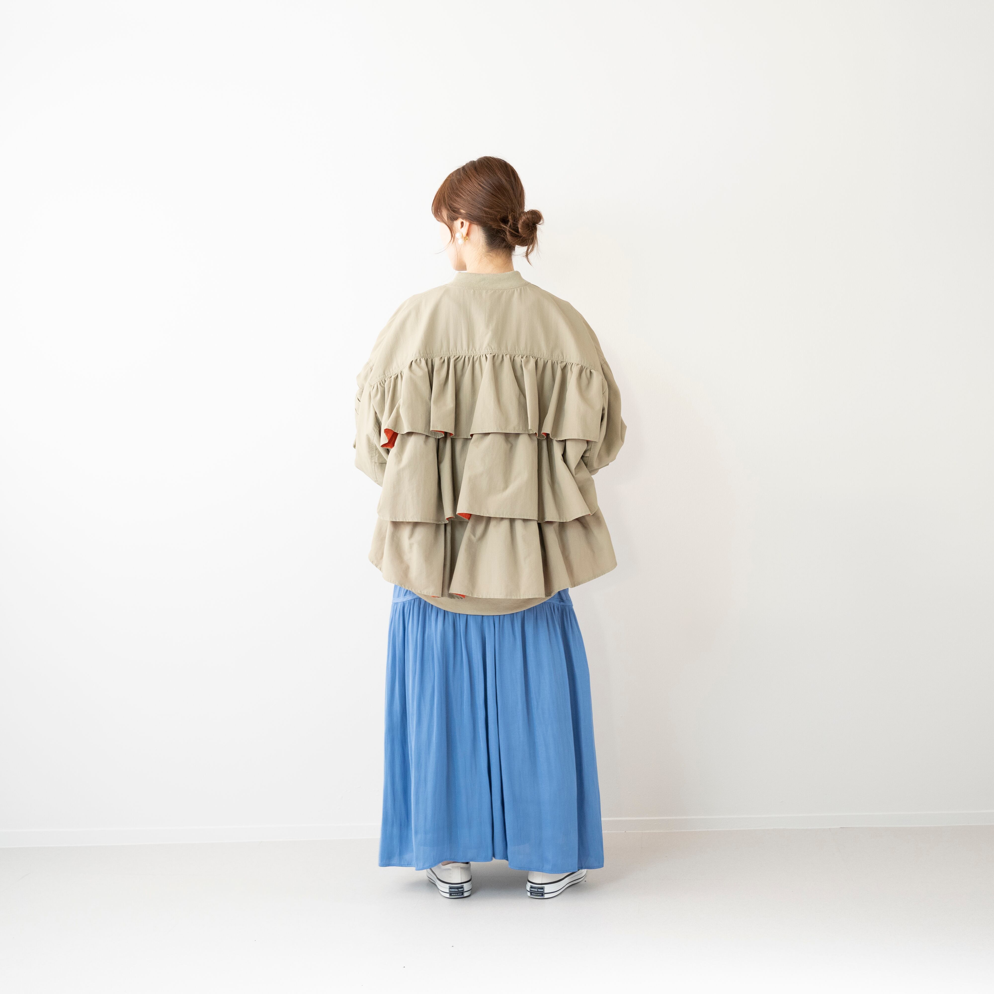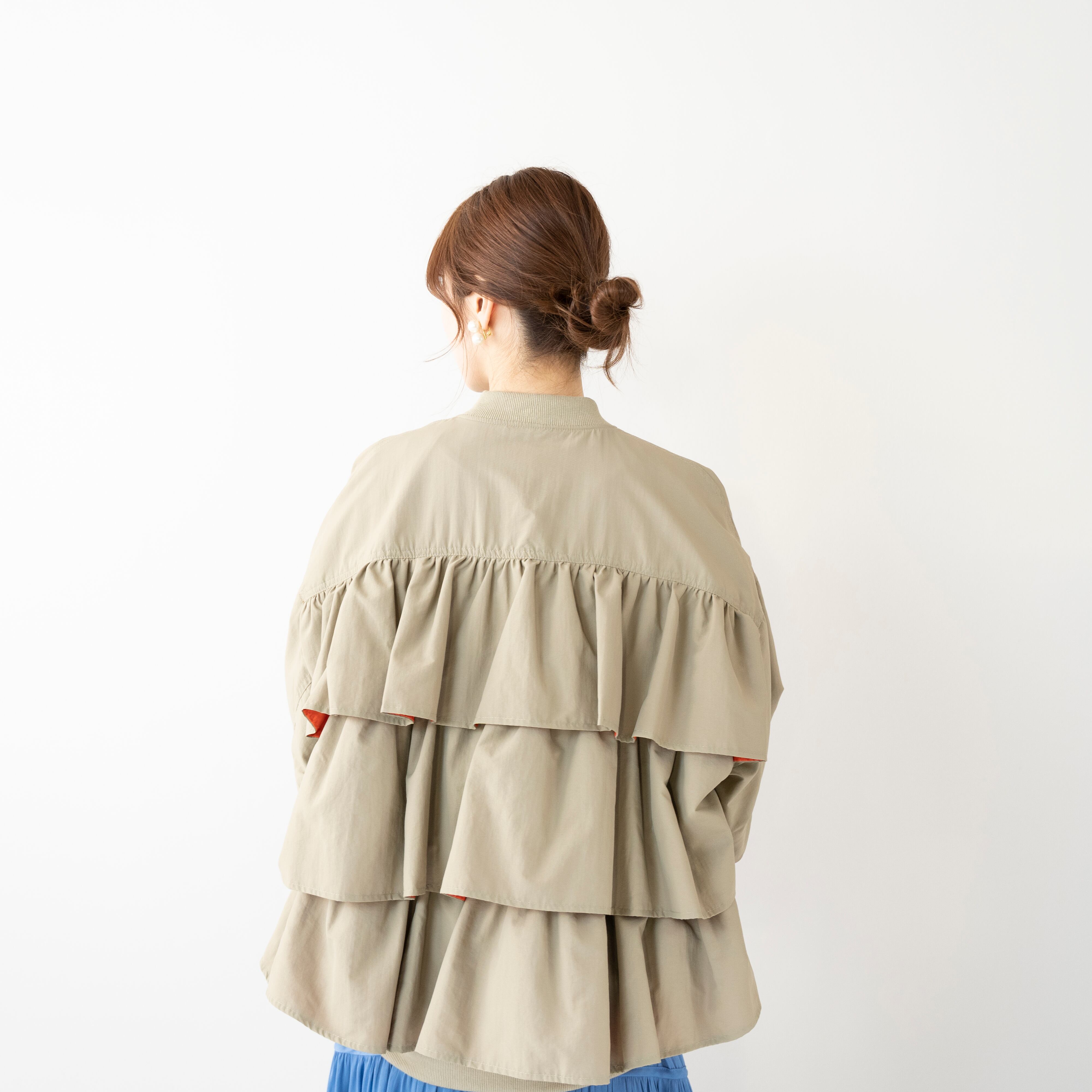真に1段、後ろに3段フリルをあしらったMA1タイプのブルゾン。