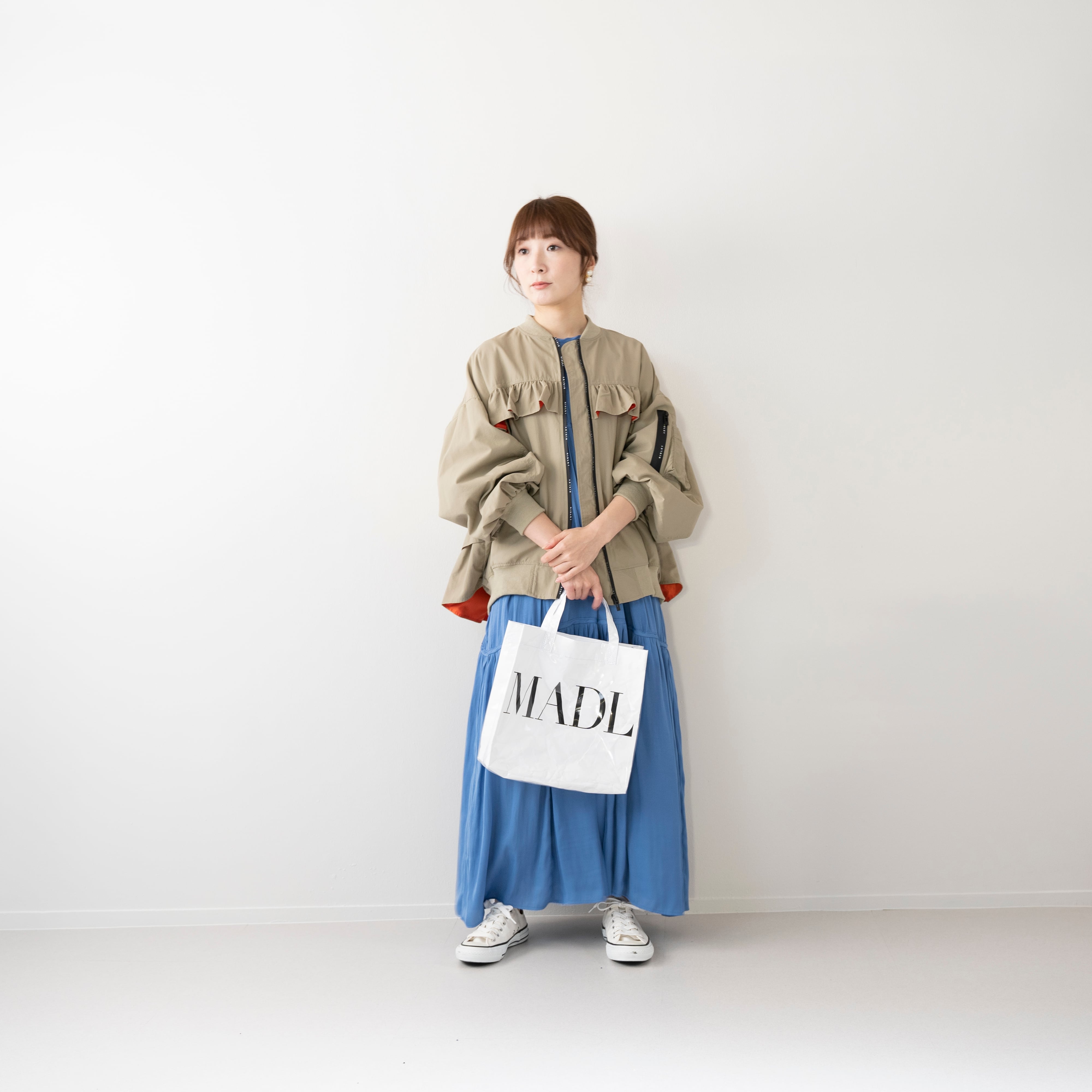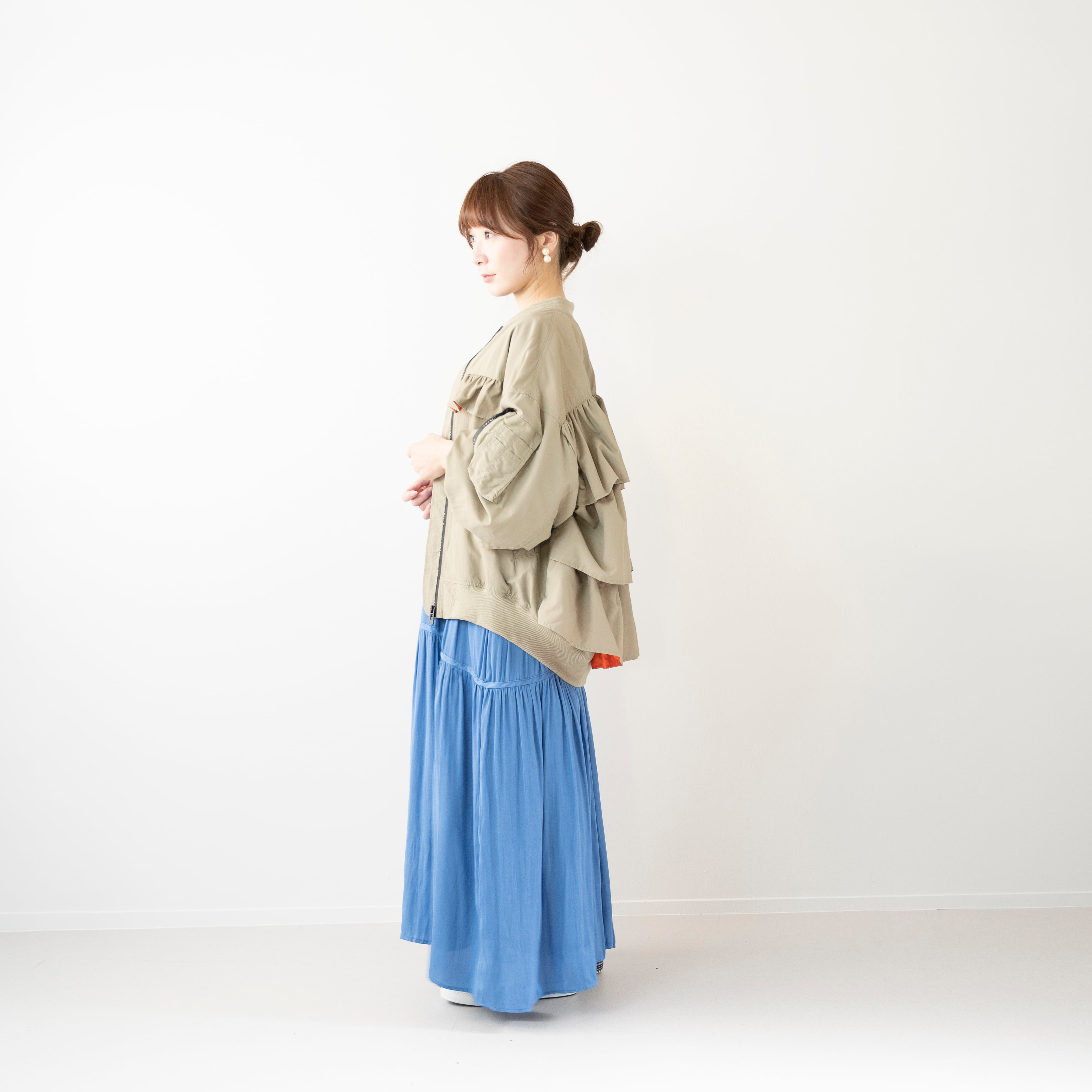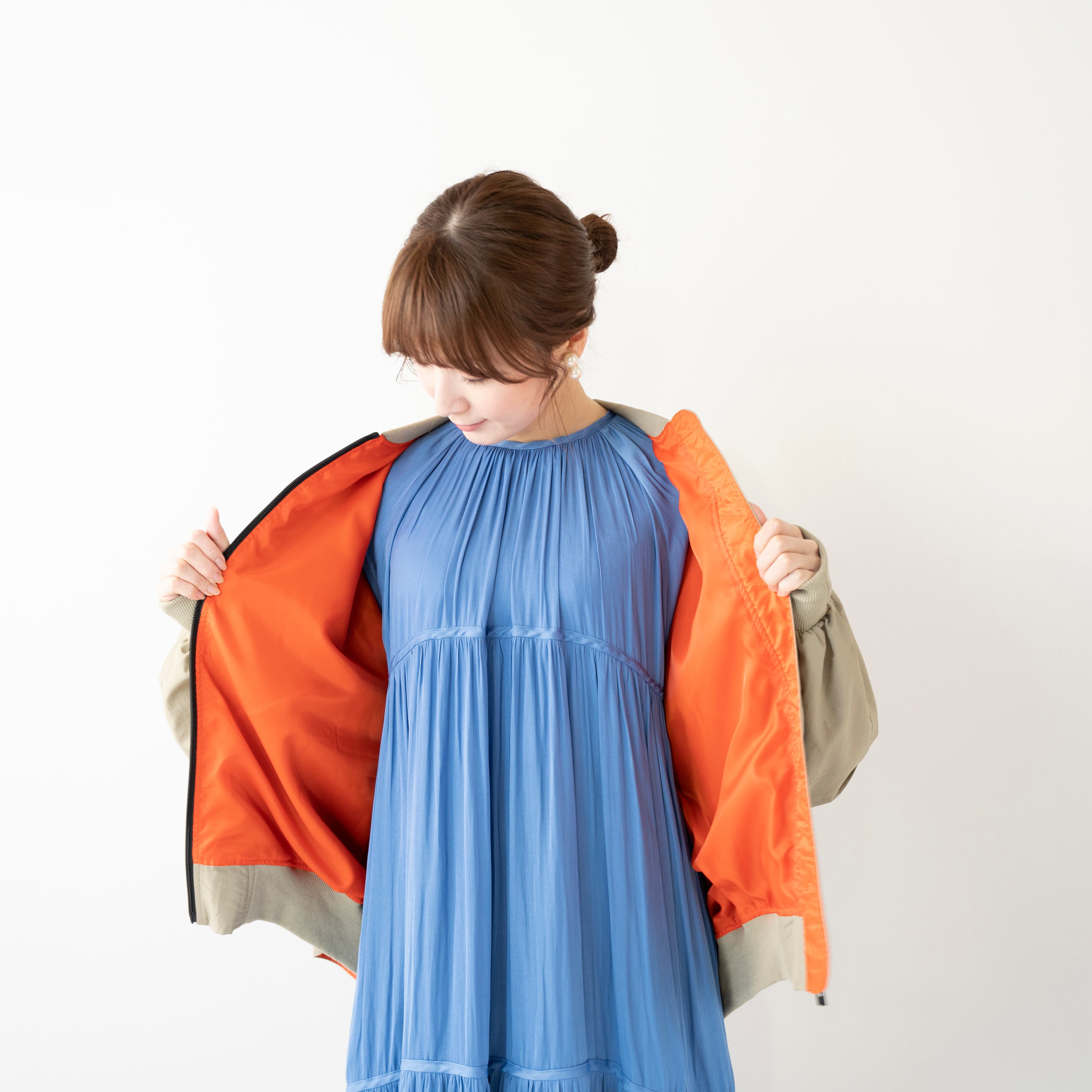 真に1段、後ろに3段フリルをあしらったMA1タイプのブルゾン。