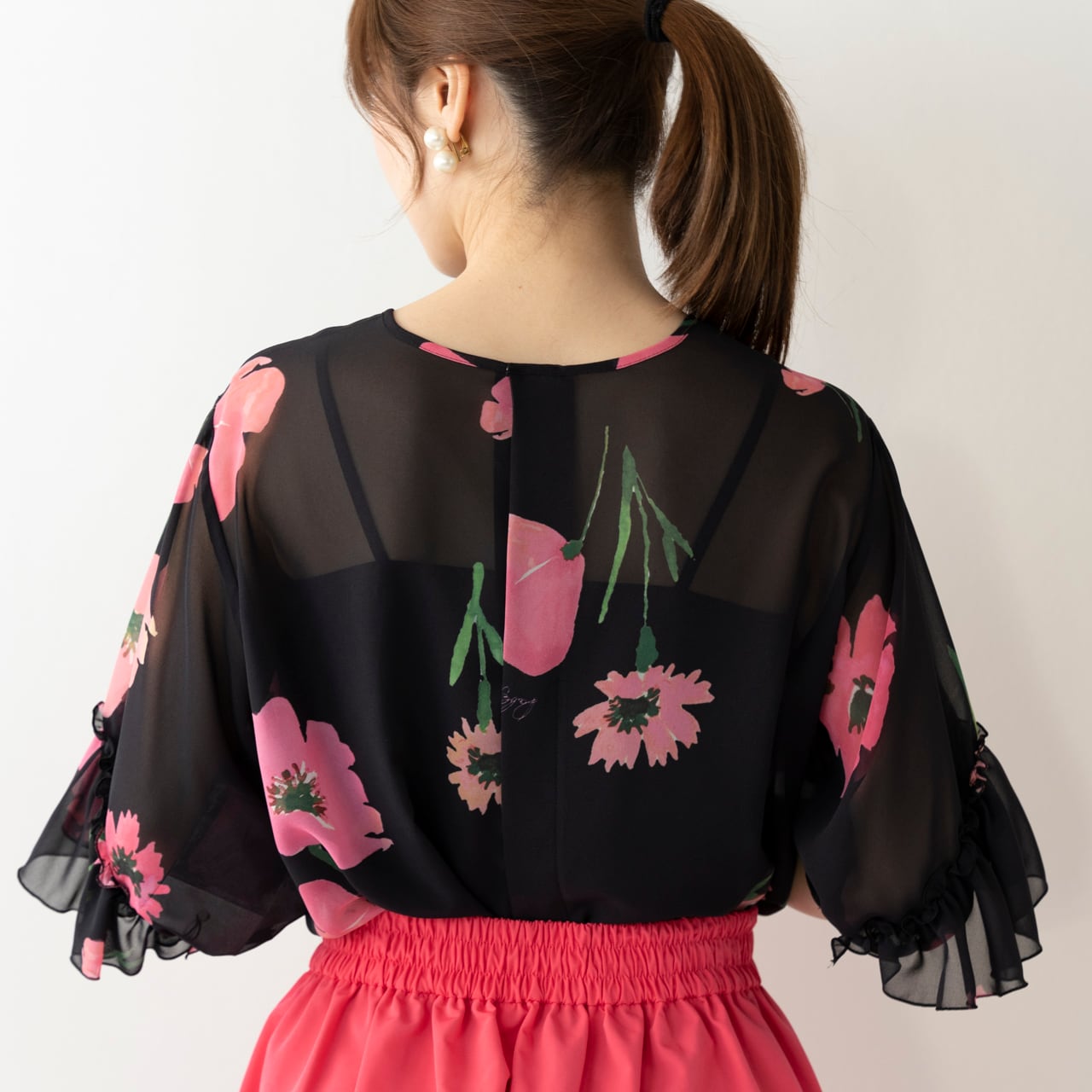 オリジナルの鮮やかなポピー柄が印象的なブラウス。