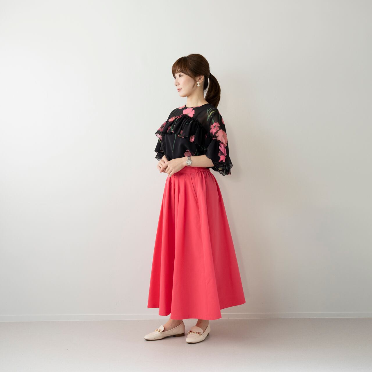 胸元から袖にかけてのフリルがフェミニンで、キレイな